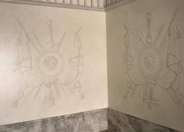 décor en trompe l'oeil de Gorgone en Grisaille
