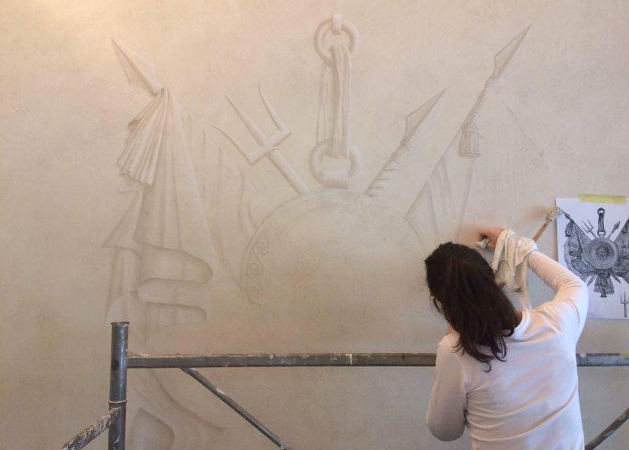 • décor en trompe l'oeil de Gorgone en Grisaille