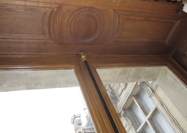 Réfection du décor faux chêne sur les panneaux des portes de la galerie de minéralogie du musée.