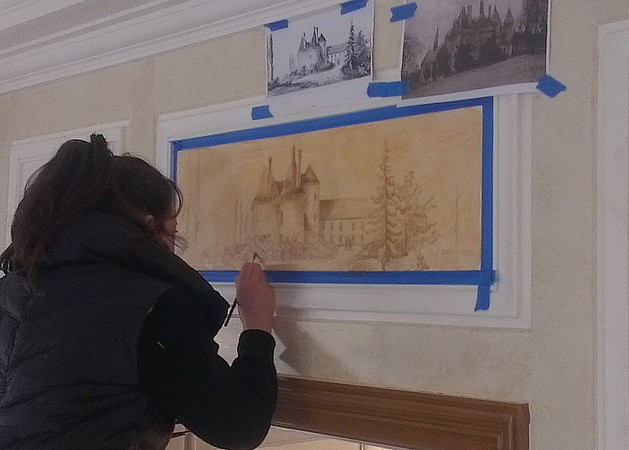Restauration d'une fresque des années 1920 de Soléro Macédonski au chateau de l'Esparrou.