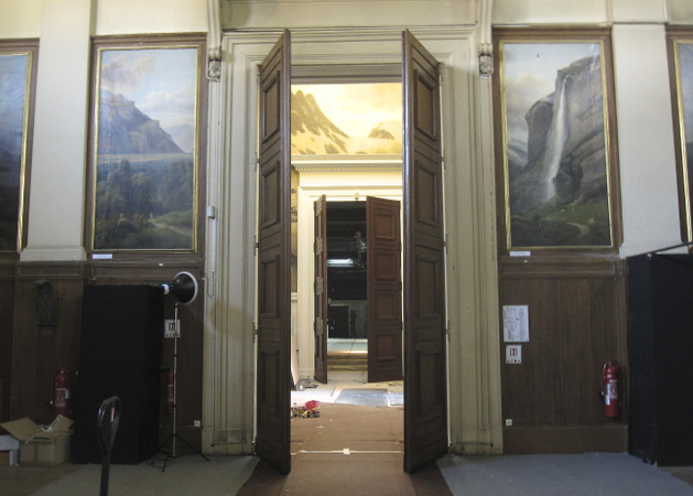 Restauration d'une fresque des années 1920 de Soléro Macédonski au chateau de l'Esparrou. Eloïse d'Argent, Els Creytens et Frantz Wehrlé.