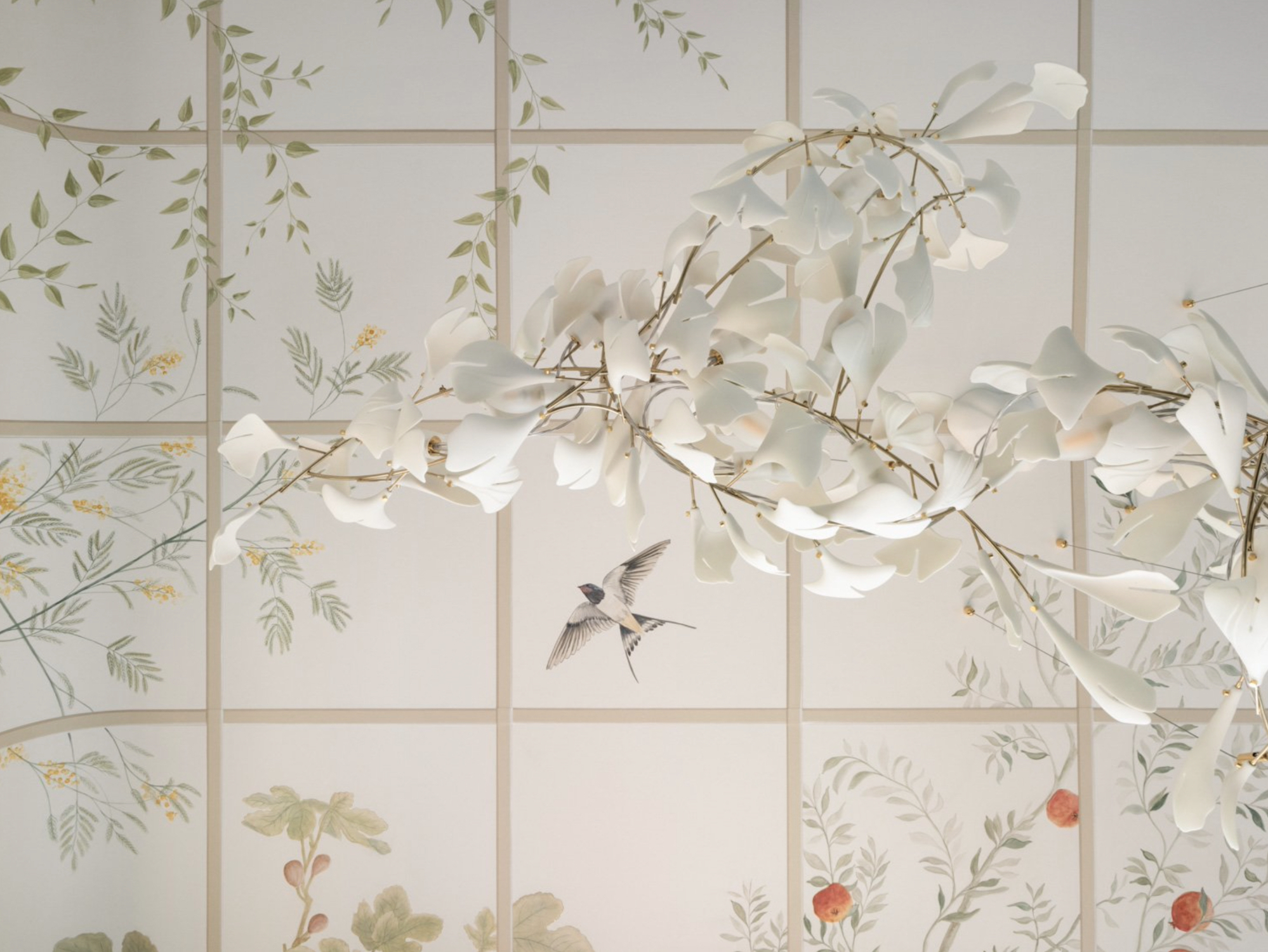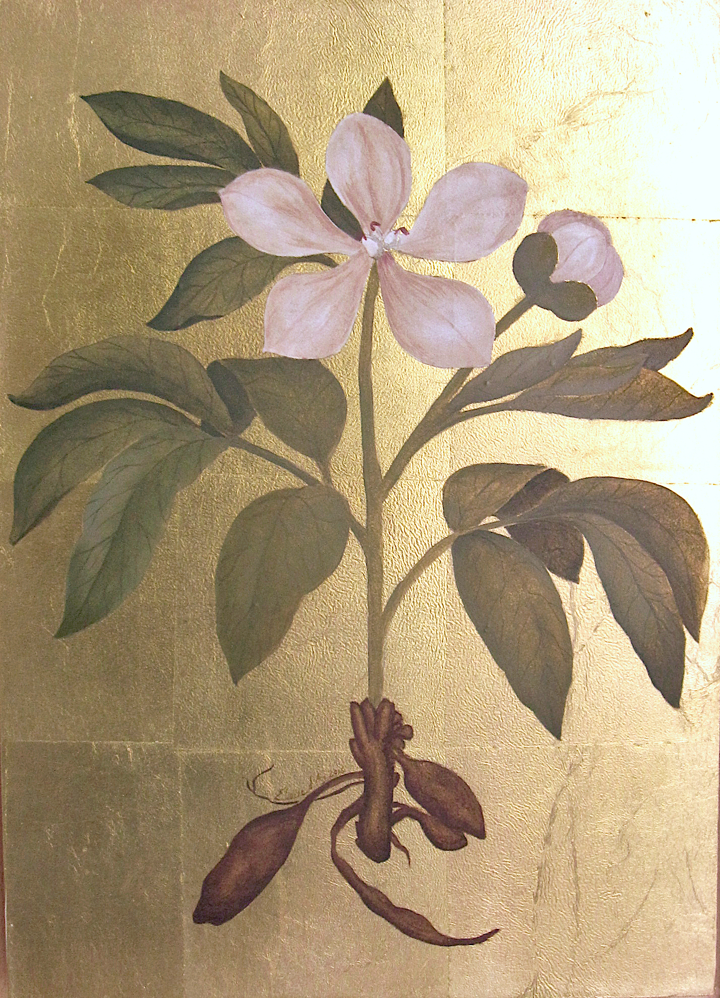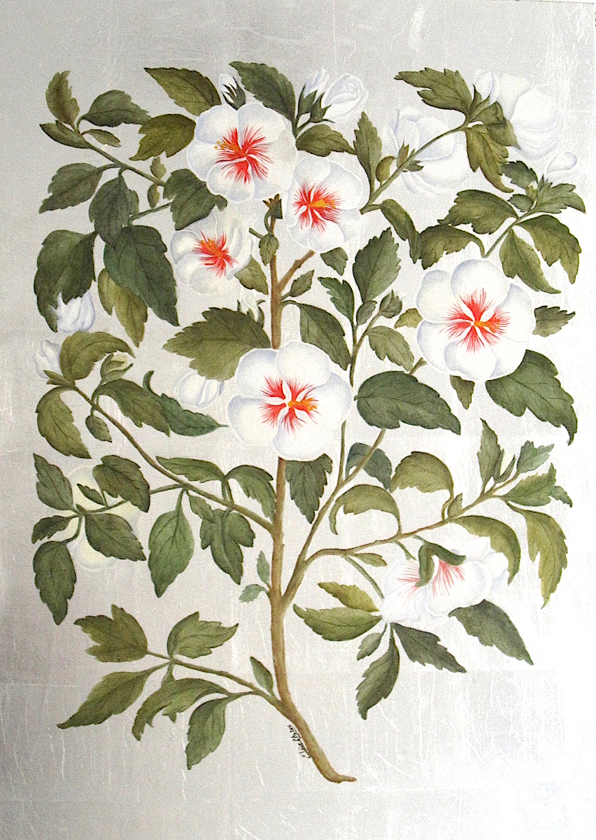 Décor botanique sur fond argenté à la feuille d'alluminium