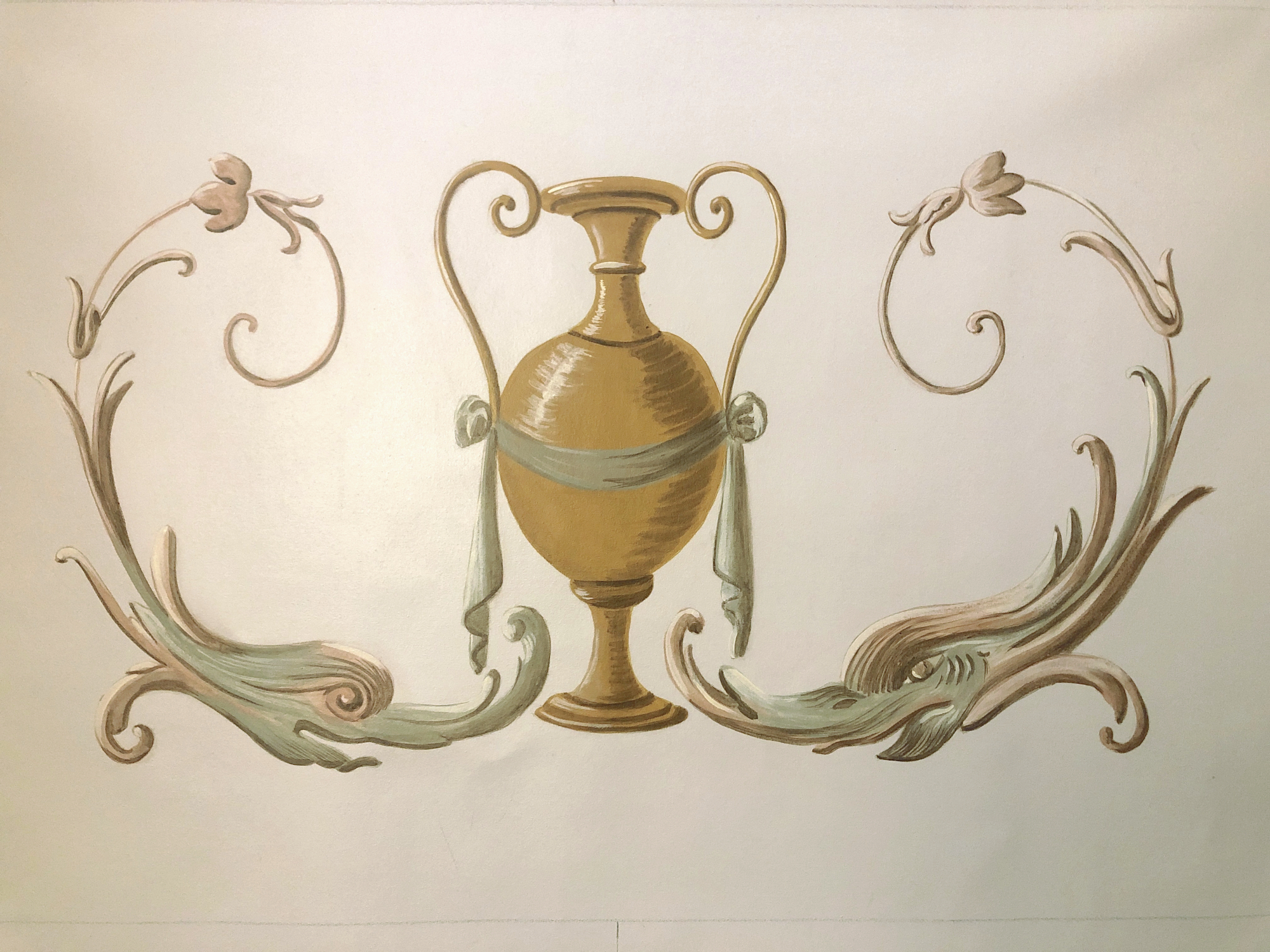 Décor de grotesques créé et réalisé pour une villa italienne en Toscane