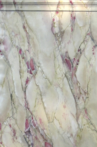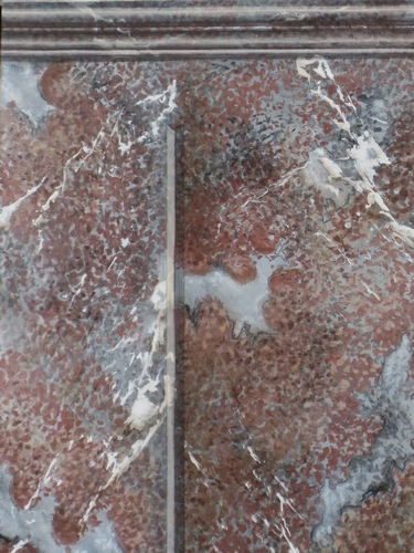 Cette brèche, originaire d’Italie, a la particularité d’être hétérogène. Elle est composée d’éléments blancs de calcaire, et de calcaires cristallins violets, verts ou gris. Les plus beaux échantillons de brèche violette sont ceux comportant le moins de blanc et le plus de violet possible. Le dessin de son veinage peut beaucoup varier d’un échantillon à l’autre.