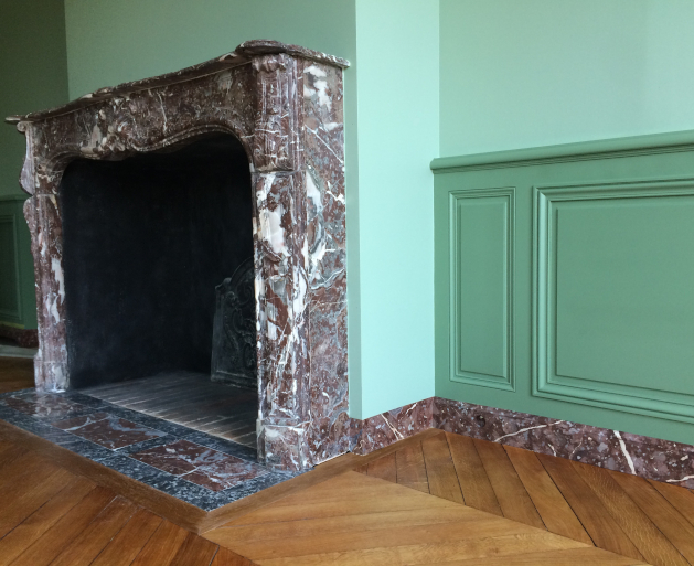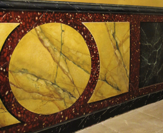 Imitation de diverses matières en trompe l'oeil : faux marbres, faux bois, imitation Pierre de France et toutes sortes de patines peintes ou sur enduit matiéré.